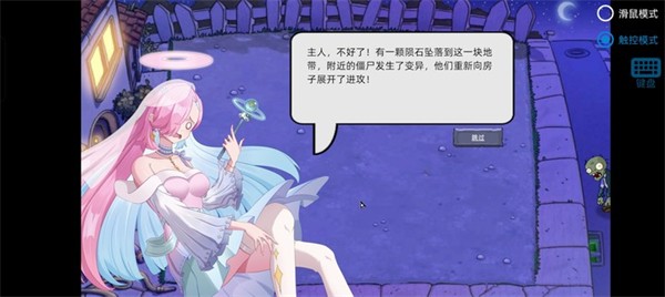 3、刚开始会有一段动画来代入剧情,有一款陨石坠落到了我们家园附近,导致僵尸都发生了变异,正在重新向我们展开进攻。