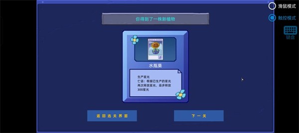6、通过第一关我们可以获得水瓶葵,要注意不是向日葵哦。
