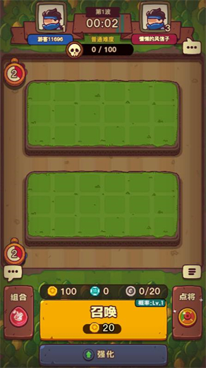 2、点击召唤能召唤小将进行战斗,消灭敌人可以获得金币继续召唤。