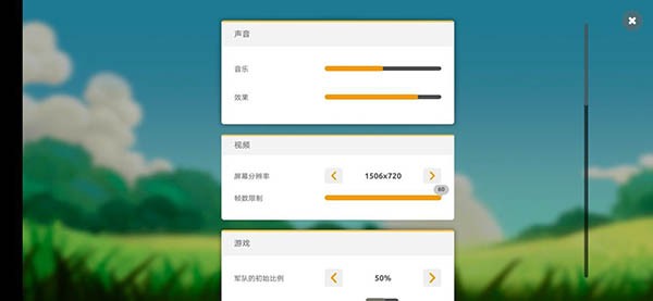 在设置界面可对音乐、分辨率、游戏特效等进行调整: