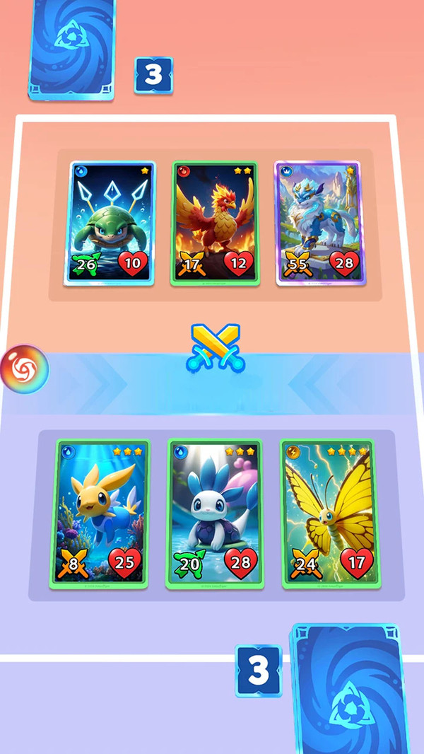 2、收集的卡牌越多,迷你怪兽就会越强大,提高对战实力。