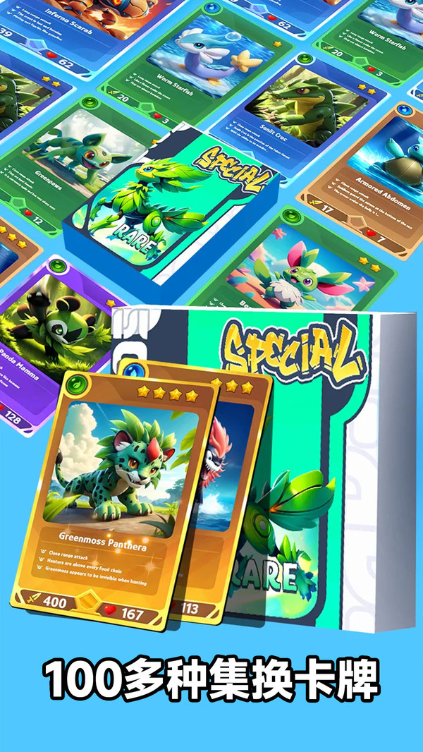 2、解锁稀有强大的怪兽卡牌,参与到更强的对战中。