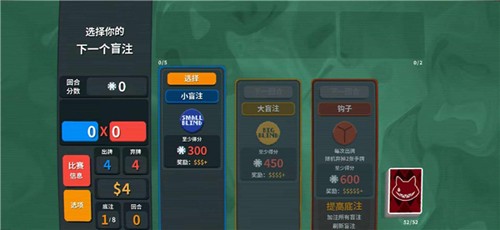 大小“盲注”关卡可跳过,玩家会获得一个奖励,但是也会失去金钱及进入商店的机会。