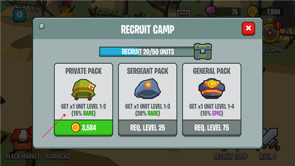 2、点击开始购买士兵,这里出来的都是随机的士兵种类。