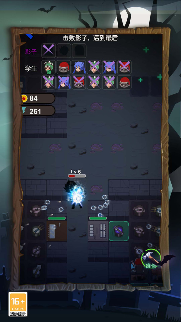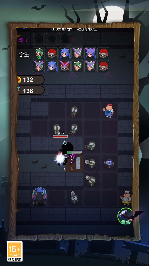 3、游戏分为两大阵营,学生阵营也就是正义阵营,影子阵营也就是邪恶阵营。