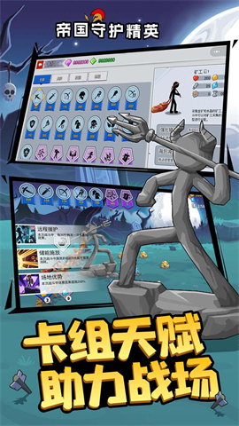 1.各种火柴人角色解锁加入其中,守护自己的帝国
