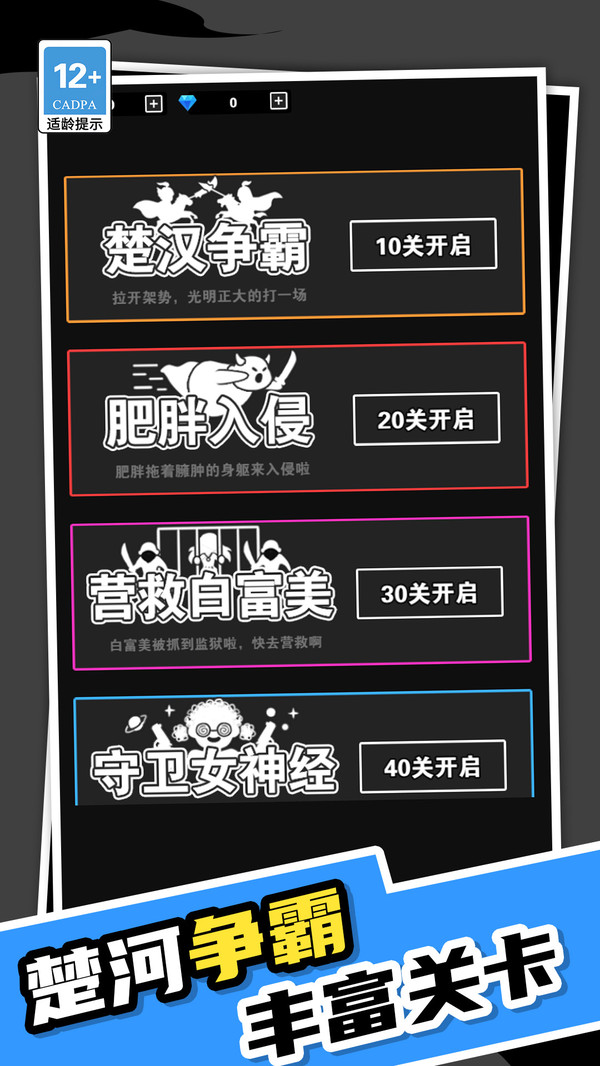 3、玩家需要根据自己的探索来解锁关卡,楚汉争霸,丰富的关卡挑战。