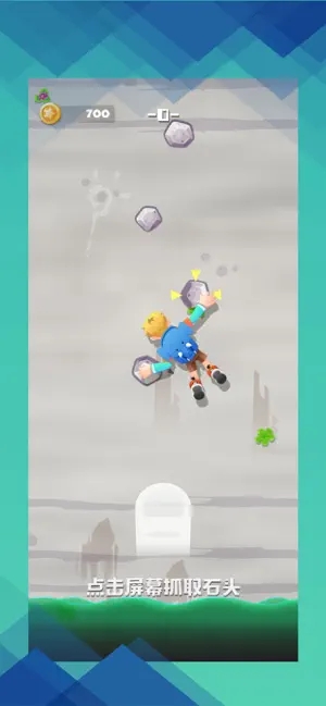 3、滑动屏幕,从一块岩石跳到另一个岩石,让你能够迅速的攀岩上去完成挑战。