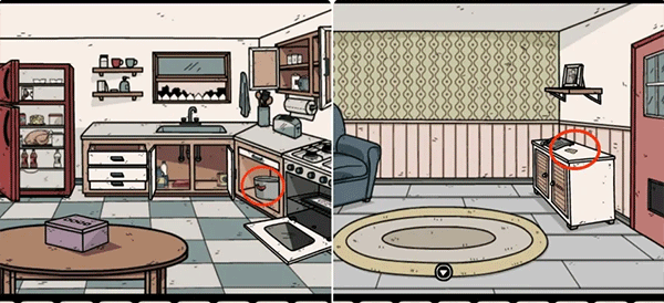 9、先用火柴点燃厨房门口的蜡烛,再结合两个视角下烤箱里的饼干提示。打开卡丽莎视角厨房里的盒子拿到汽车钥匙,接着到外面拿走被点燃的蜡烛。