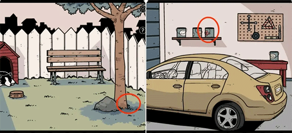 4、后院拿走树根处的铁铲,到车库用其打开架子上的颜料罐拿到钥匙。