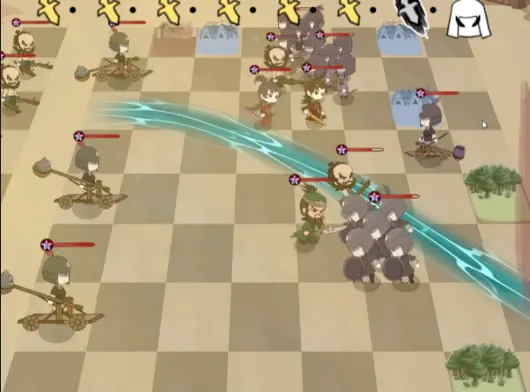 3、将小兵放在棋盘上后可以点击开始战斗进行闯关,棋子会自动攻击敌人,击败所有敌人后就可以通关。