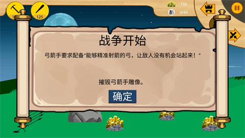 5、我们可以通过左上角来召唤黄金兵和战士,通过右上角前进、暂停和后退来控制我方的战士,