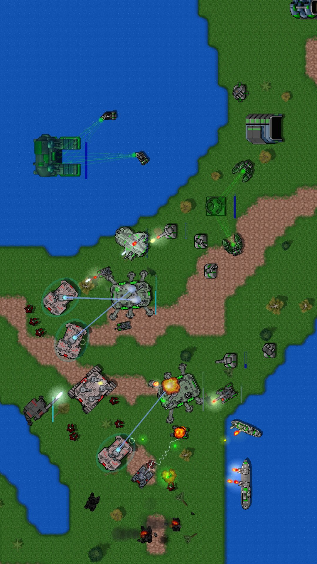 3、战略缩放功能:缩小查看,并发出命令,在整个战场通过WiFi和互联网的多人生存模式(塔防)支持保存和加载游戏。