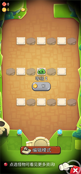 3、召唤完毕之后,回到初始页面,点击右下角的编辑模式,点击怪兽将其放置在地图之上