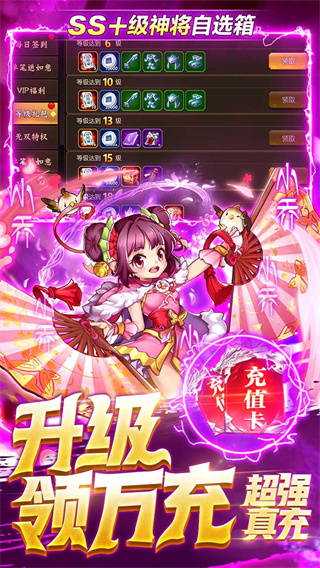 1、玩家通过各种途径获得名将卡牌,招募心仪的名将,组建强大的军队。