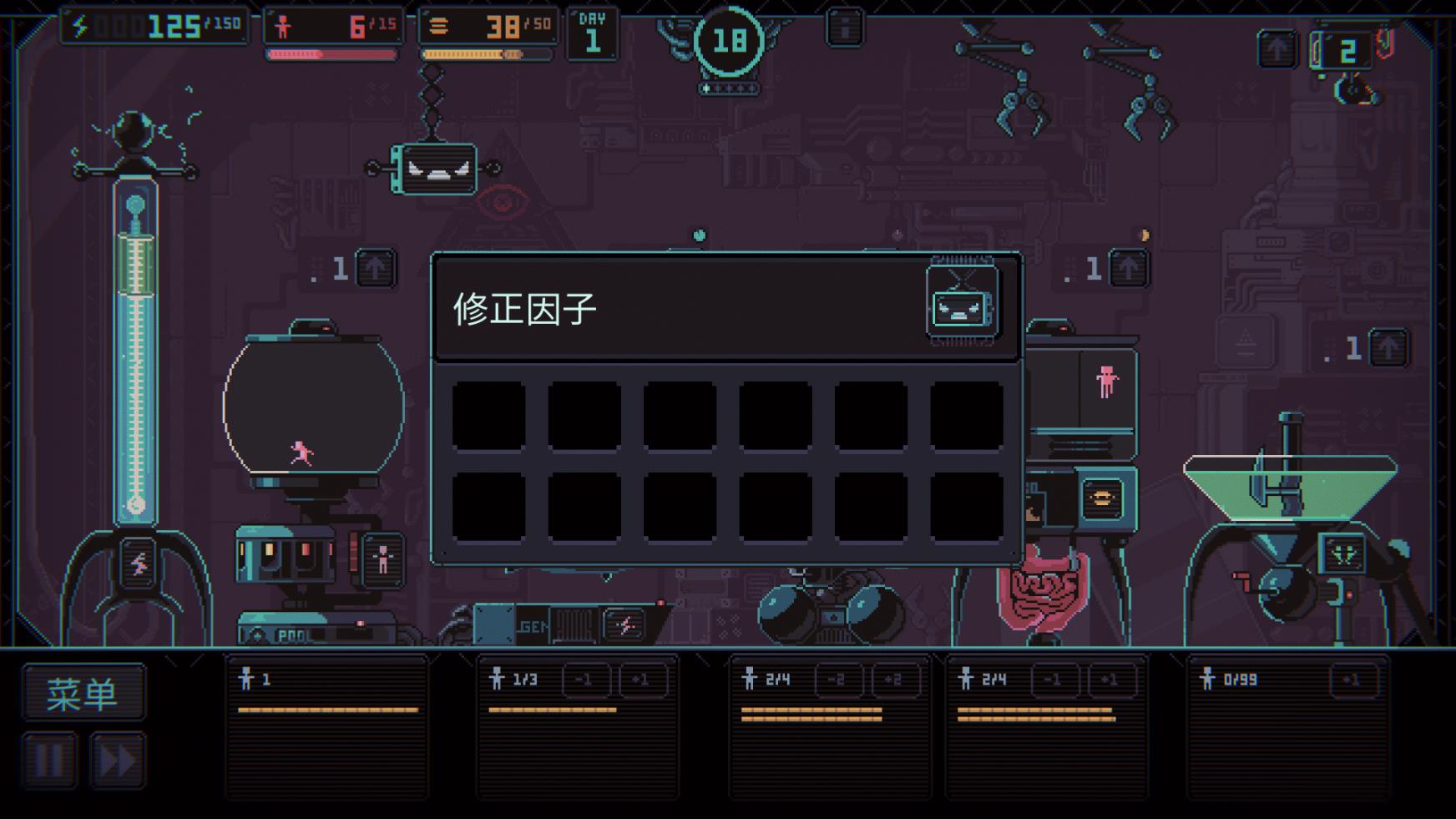 4、屏幕正上方的是你当前的电量、小人数量、食物量和天数。