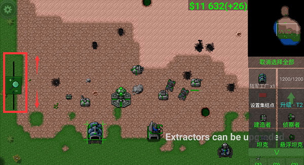 6、如果觉得士兵太小地图不清楚,可以拉动左边的屏幕管理按钮,可以进行放大缩小。