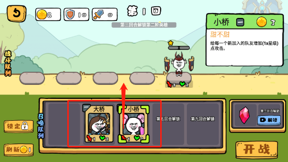 点击开始游戏,玩家需要将英雄拖入队伍中,进行合理的列队