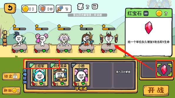 下图所示的“刷新”可获得更多的英雄,相同的英雄可进行合成升星获得更大的属性提升