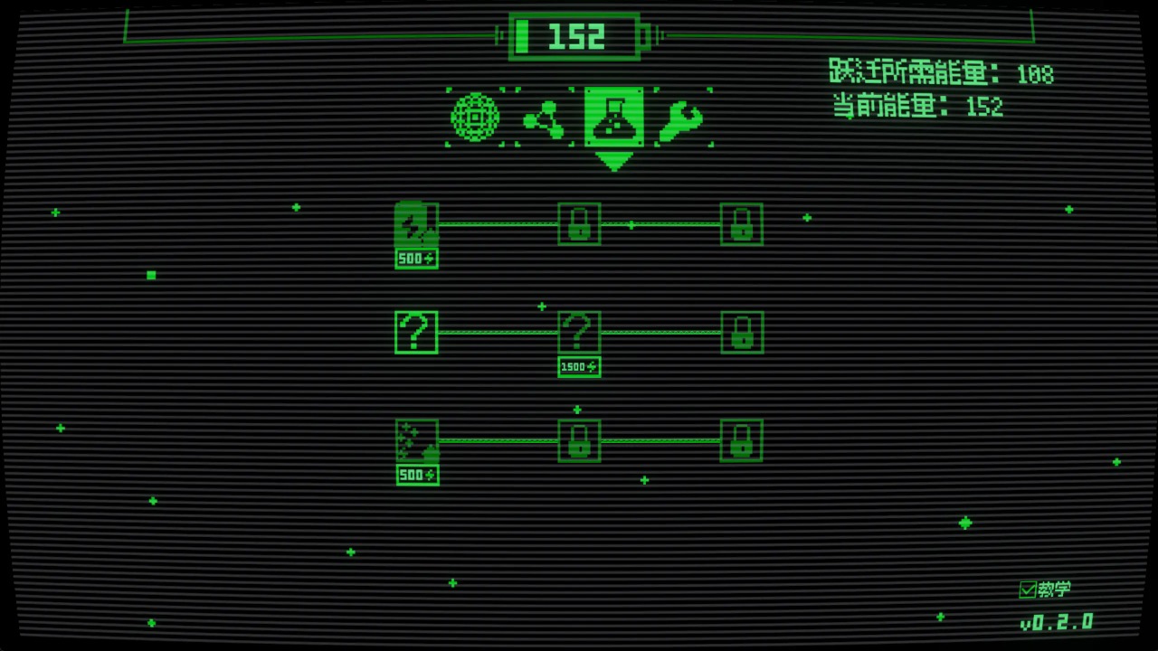 这里是飞船科技界面,玩家可以花费能量解锁该科技,从而在反应中获得更多能量。玩家需要依照科技树的指引逐步解锁下个技术。