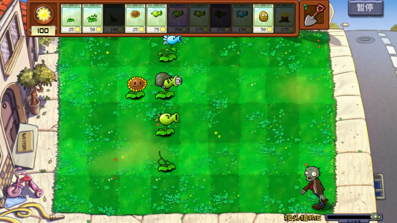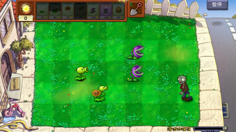 3、建立很多的植物防线,来抵御僵尸的一波又一波的攻击。