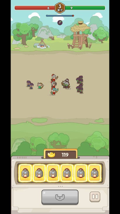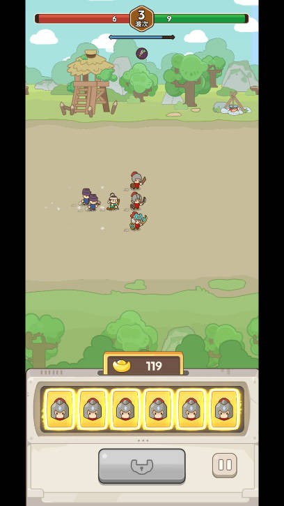 1、等到游戏的后期,你可以招募很多的士兵,直接占满整个屏幕,但是敌人也会更多。