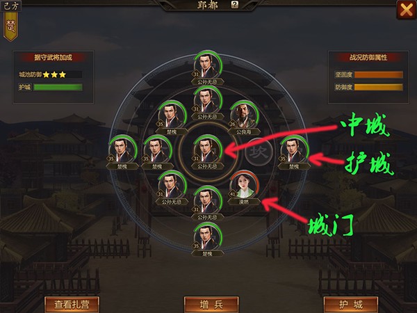 2、国战据守中门、据守城门、据守护城
