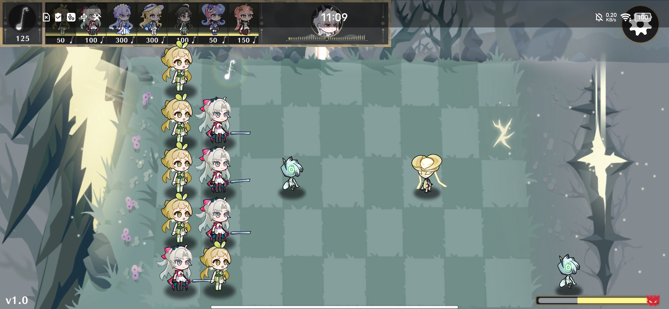 玩家开局拥有一些音符,可以种植几个共鸣者来阻挡怪物入侵。