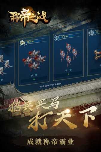 称帝之战官方版是一款很吸引人的手机策略战争游戏,称帝之战官方版它玩起来十分给力,在称帝之战官方版中,超多的游戏玩法,历史上的各大将领都会一一登场,玩家不仅要攻沙占城,在这款游戏里,让这个世界的子民都臣服于你,真实再现乱世的三国世界,你可以召集培养你的军队去攻打天下,让您体验到别样的策略三国游戏乐趣,喜欢策略战争的玩家,快来下载体验吧!