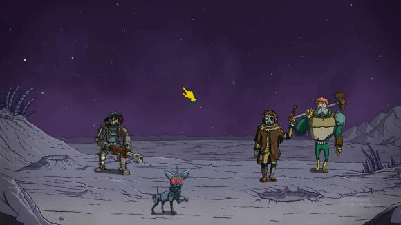 降落后等待犬吠剧情触发,然后探索地点中多出流水线,去流水线探索能带回破损的机械狗。几天后触发修理剧情,打火机、书、胶带随便选哪个都行,再过几天提示找零件,探索地点中多出墓地,去墓地或博物馆探索均能带回零件。接下来触发充电剧情,给电池即可。然后到达分支点,给机械狗装饰,这里一定要选智力。再过几天触发充能,会清空你的电力,然后要你派人出去,随便选一个即可。之后触发新飞船结局。