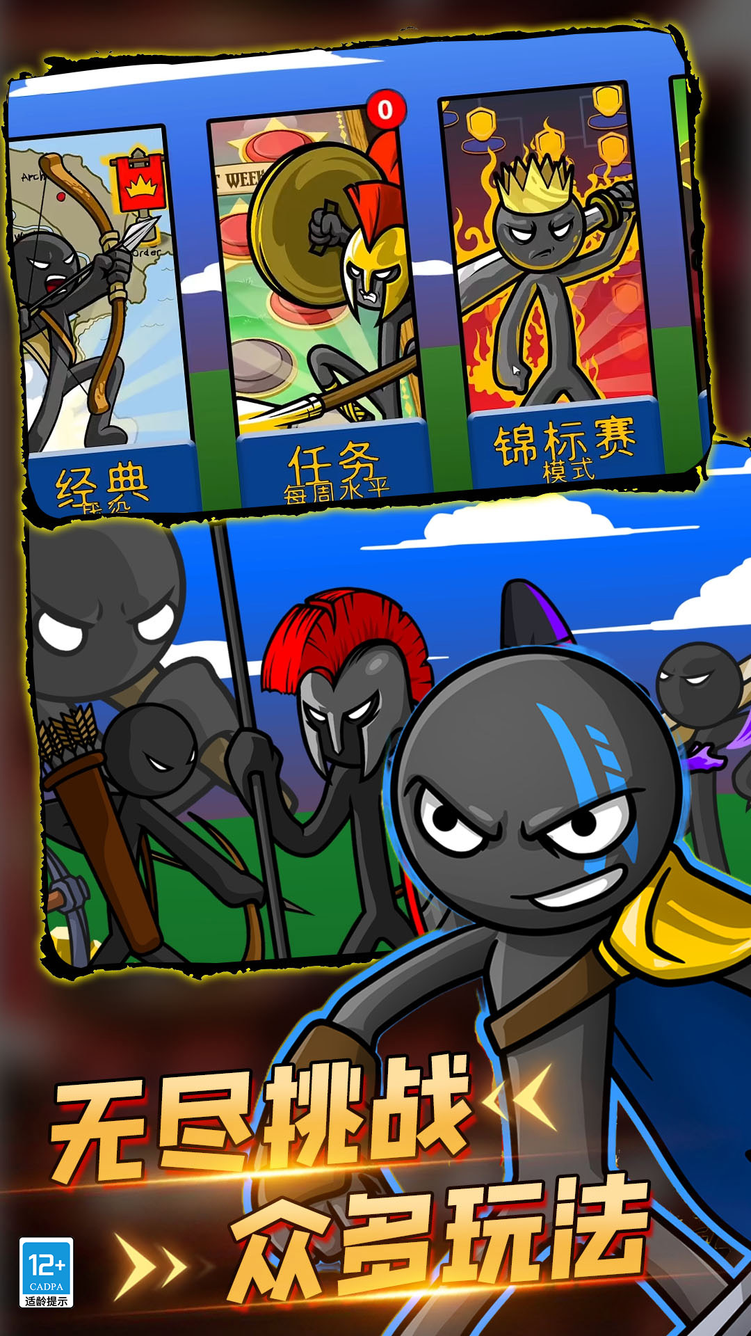 3、这里面有强大的火柴人战士,还有神秘的火柴人魔法师,还有巨型火柴人泰坦。