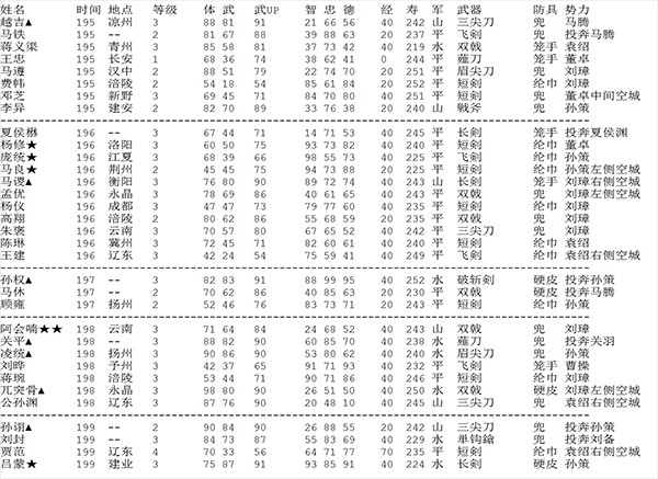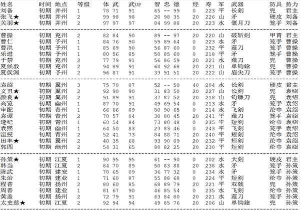 LEVEL(武将等级):打倒一定的经验值后会提升,这会影响武力与部队的编程。