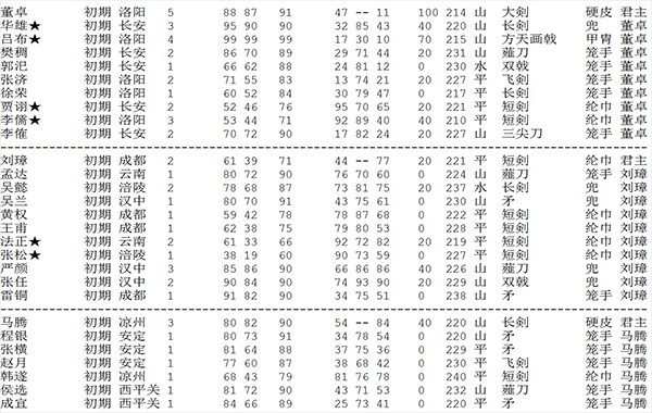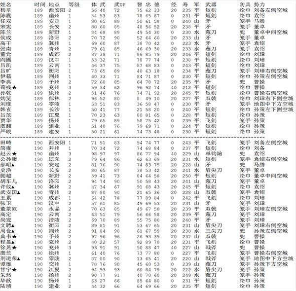 忠(忠诚度):对君主的忠诚度,数字越小,就越有可能背叛。
