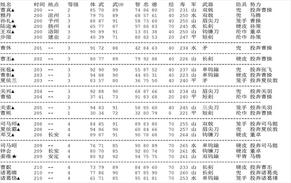 武(武力):表示战争的攻击力,属下的士兵也具有和武将相同的武力,水准提高时,武力也会提升。