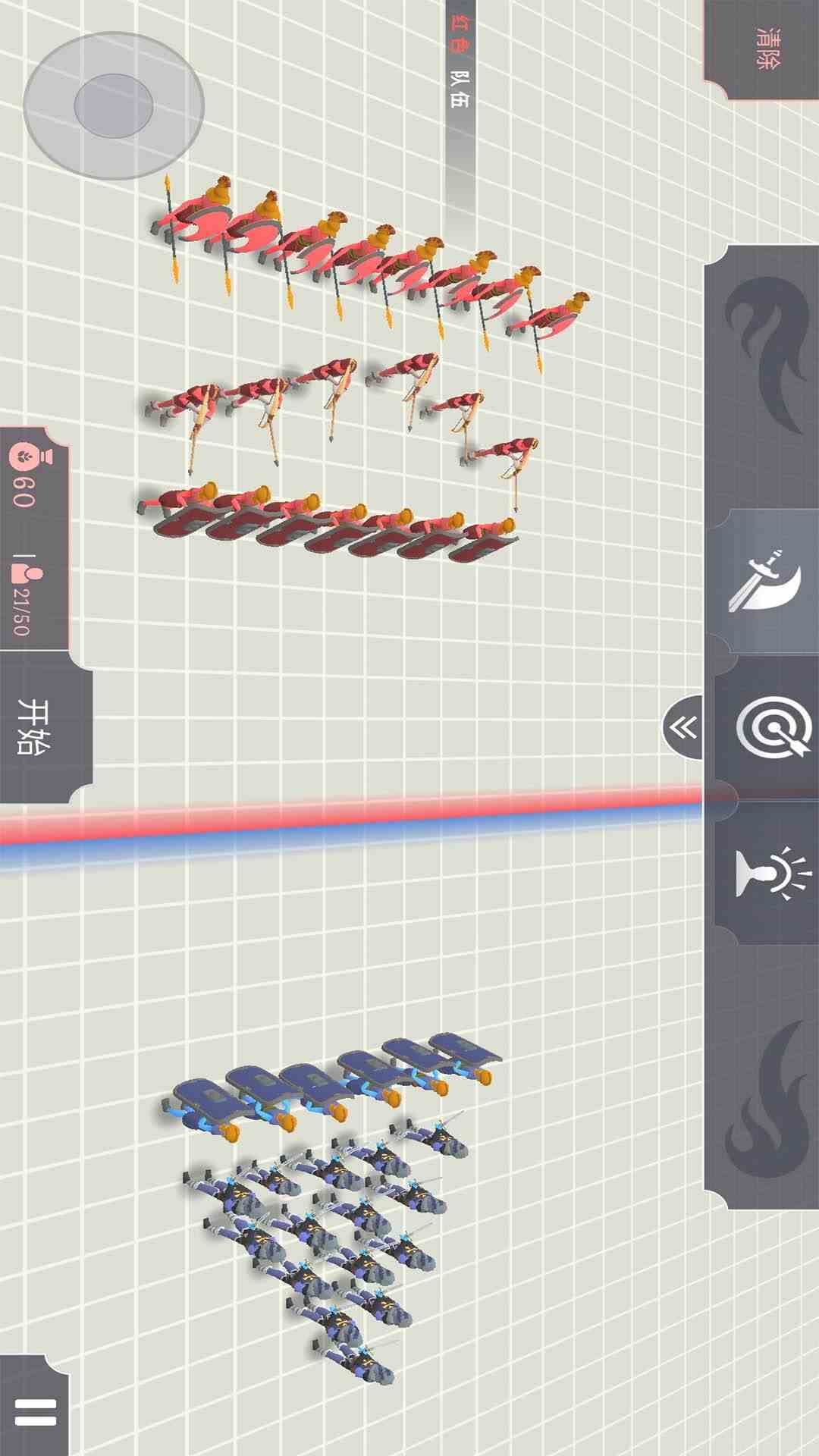 3、前排的士兵用战斗,最好是拿着盾牌的,后排放置一些射手和炮兵。