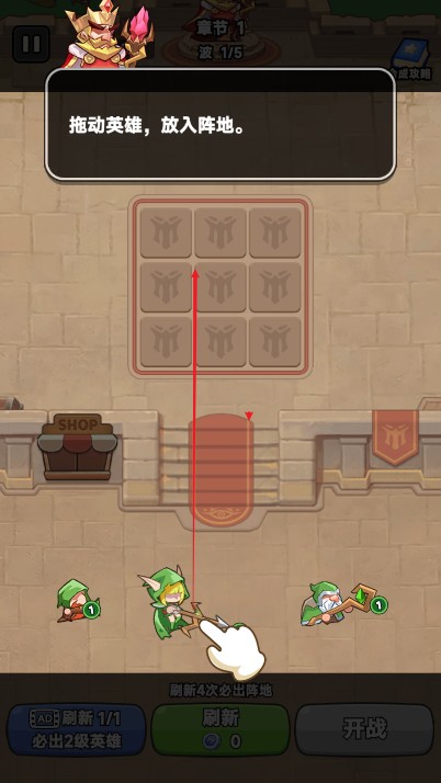 游戏中,玩家可以刷新获得不同的英雄来布置,