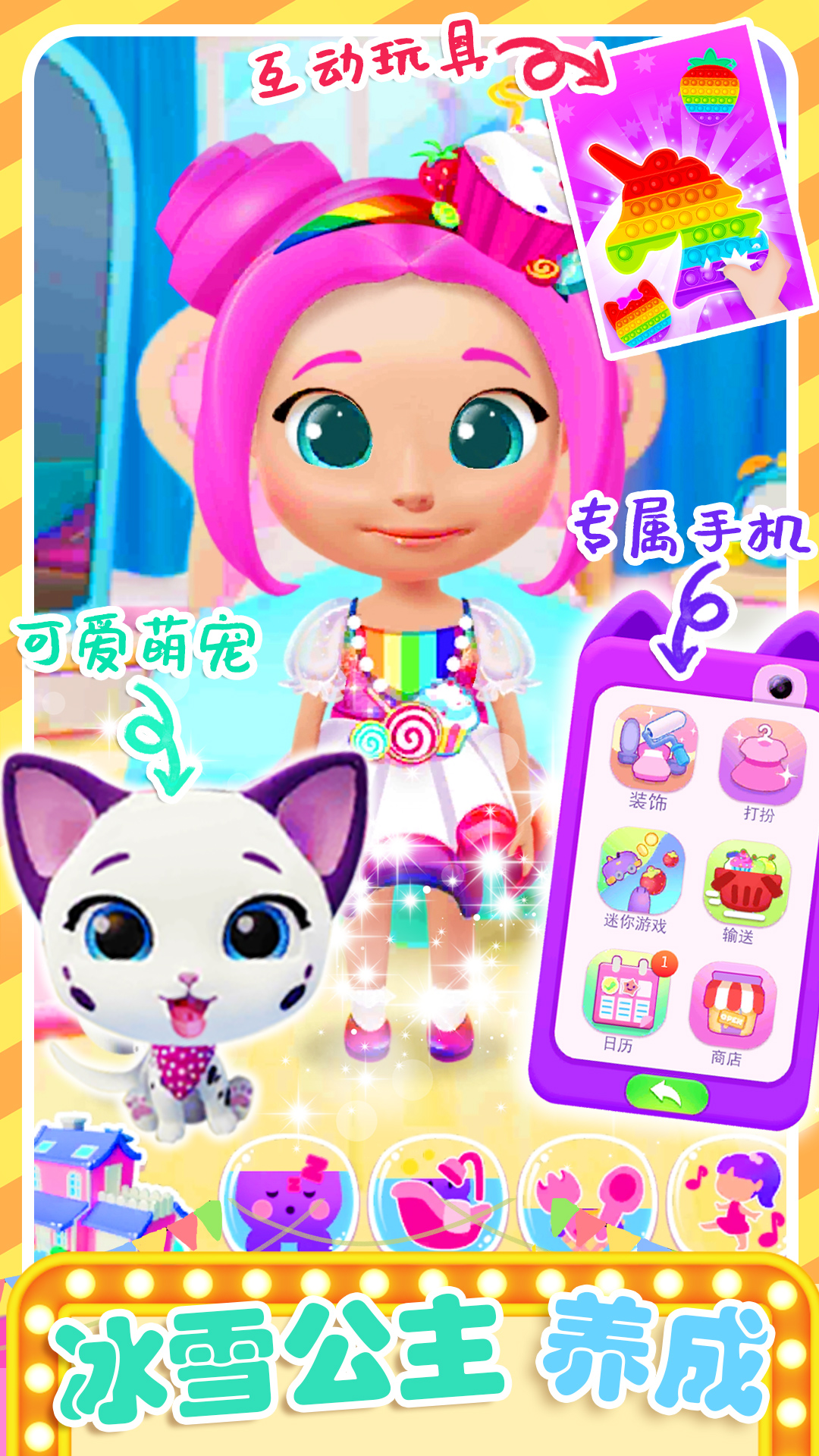 2、和冰雪公主亲密互动,多样玩法,自由尝试,很精彩;