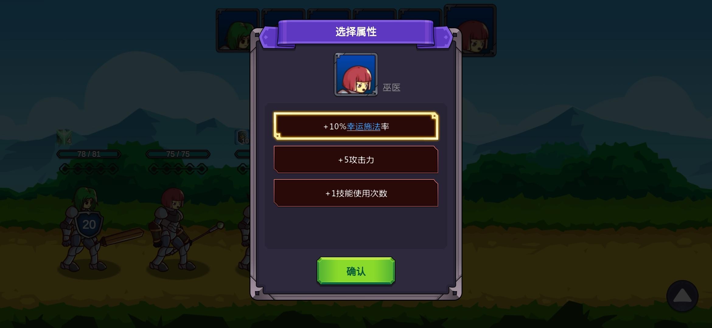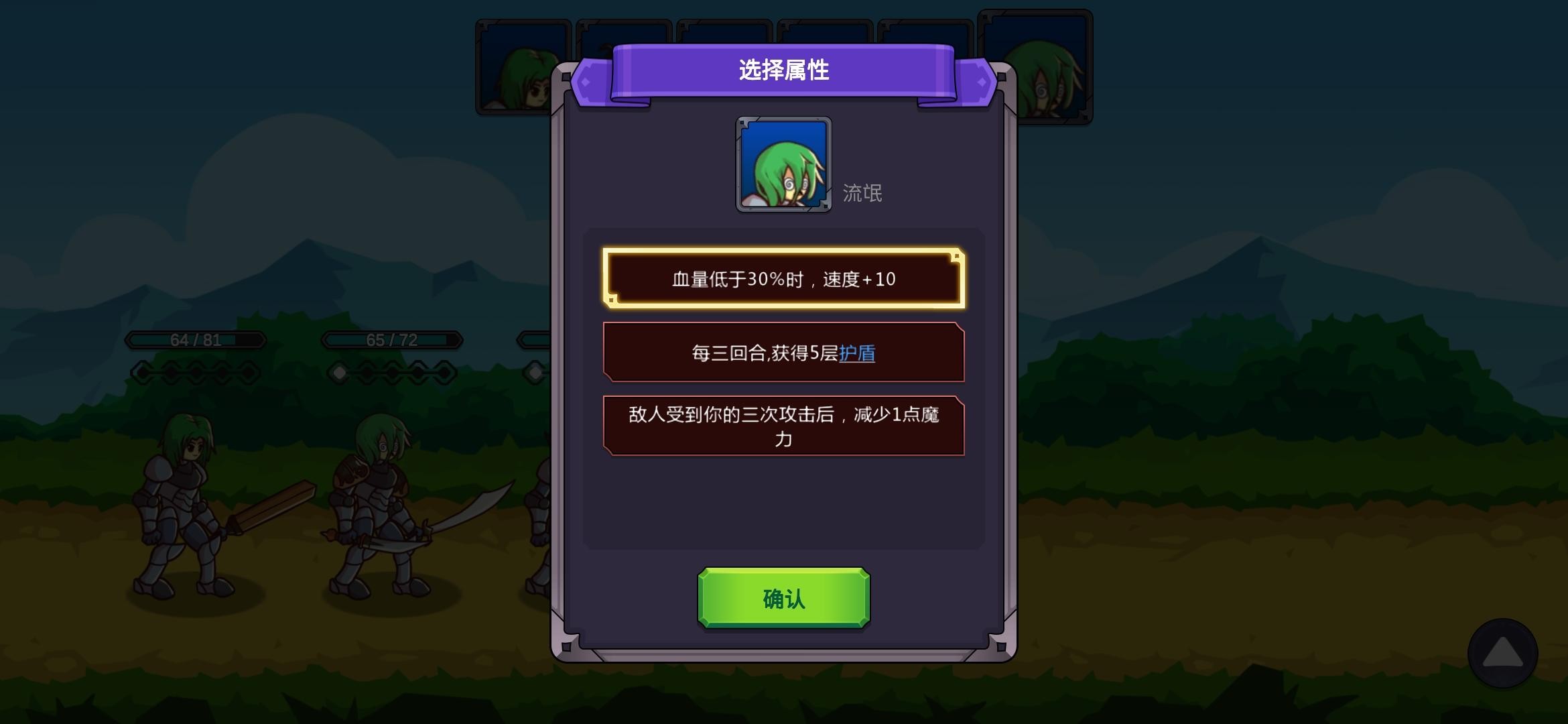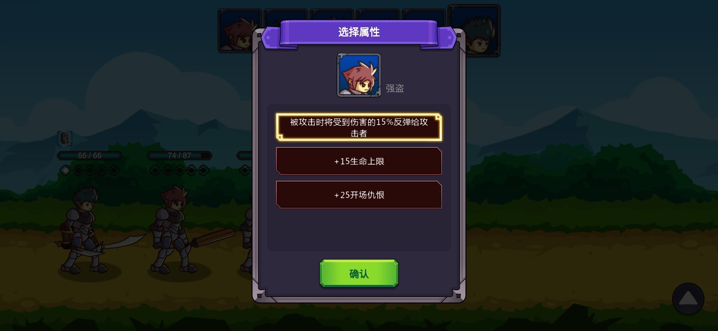 为啥不把这仨单独列出来说一下呢,因为他们太弱鸡了,不建议解锁这三个角色。士兵的升级天赋跟闹着玩一样,全是加基础数值的。要不是他那技能拉仇恨还算有点用,我都想把他排倒数第一了。法师就不用说了,公认的弱鸡职业。强盗我着重说一下,这角色应该是目前为止作者设计得最失败的角色了。虽然绿色品质角色本身强度不能设计过高,以免影响平衡,但这个强盗也太太太太弱鸡了。自身天赋受到伤害反弹30%,而自身血量又贼低,技能更是拉胯到只能释放两次,且每次只回复30%最大生命。恕我直言,角色不像反伤怪一样拥有上千的生命,弄这种以伤换伤的天赋用处甚微,更何况新版本的怪一个比一个肉,强盗这小身板跟别人肉坨子以伤换伤,能换赢吗?我的建议是把强盗天赋改为直接反弹攻击者2/4/6/8/10点伤害,这样就可以直接防守了。或者弄个自生羁绊,开局获得50/100层自生,这样跟别人以伤换伤才有底气。