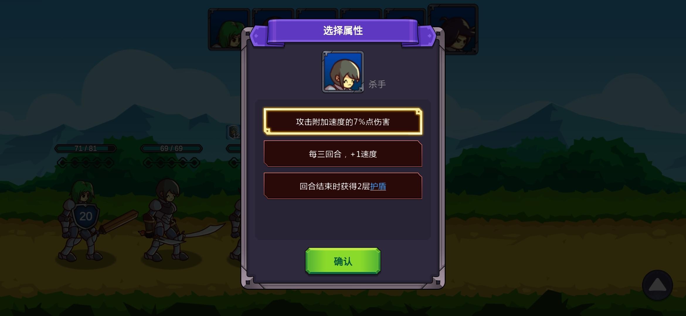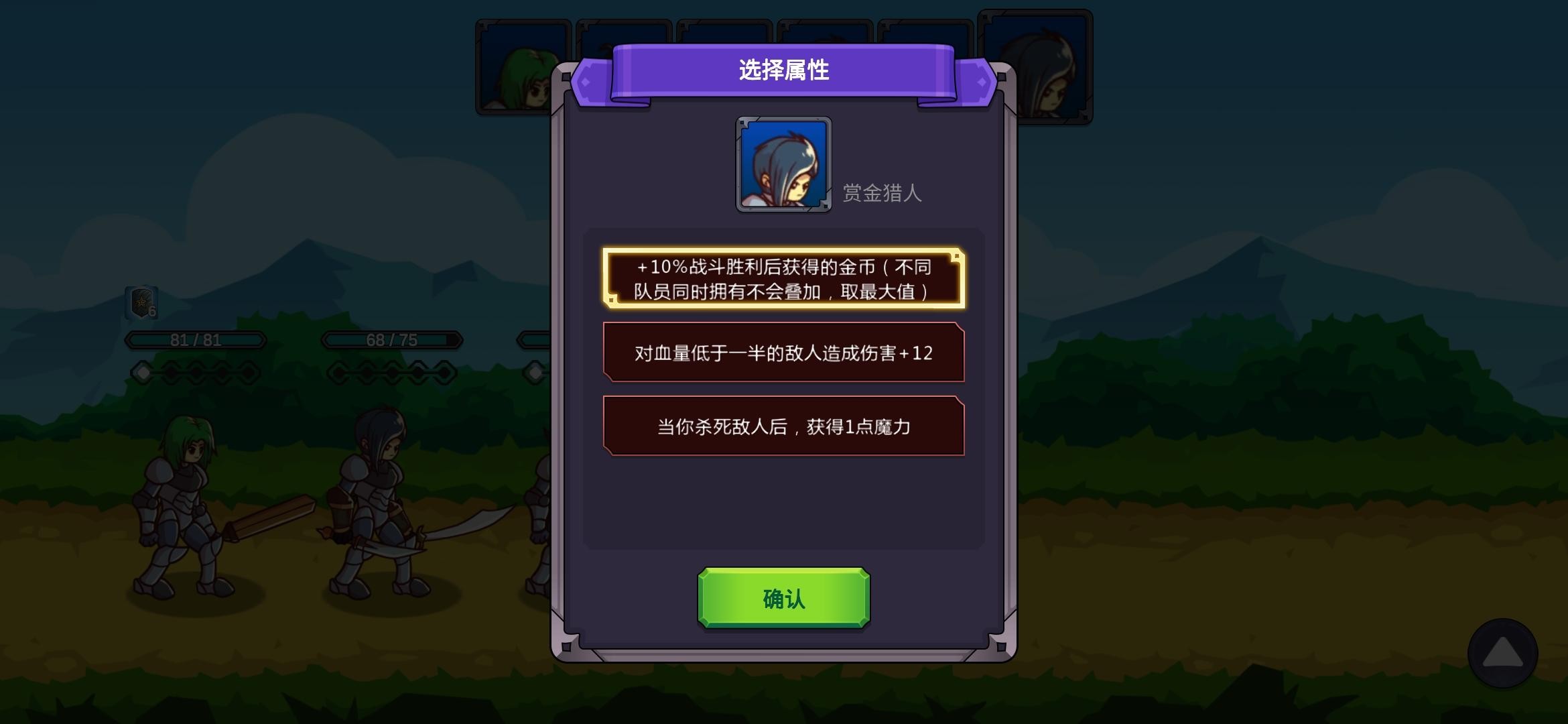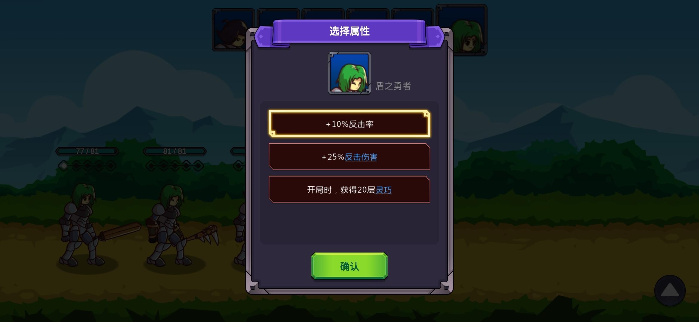 为啥不把这仨单独列出来说一下呢,因为他们太弱鸡了,不建议解锁这三个角色。士兵的升级天赋跟闹着玩一样,全是加基础数值的。要不是他那技能拉仇恨还算有点用,我都想把他排倒数第一了。法师就不用说了,公认的弱鸡职业。强盗我着重说一下,这角色应该是目前为止作者设计得最失败的角色了。虽然绿色品质角色本身强度不能设计过高,以免影响平衡,但这个强盗也太太太太弱鸡了。自身天赋受到伤害反弹30%,而自身血量又贼低,技能更是拉胯到只能释放两次,且每次只回复30%最大生命。恕我直言,角色不像反伤怪一样拥有上千的生命,弄这种以伤换伤的天赋用处甚微,更何况新版本的怪一个比一个肉,强盗这小身板跟别人肉坨子以伤换伤,能换赢吗?我的建议是把强盗天赋改为直接反弹攻击者2/4/6/8/10点伤害,这样就可以直接防守了。或者弄个自生羁绊,开局获得50/100层自生,这样跟别人以伤换伤才有底气。