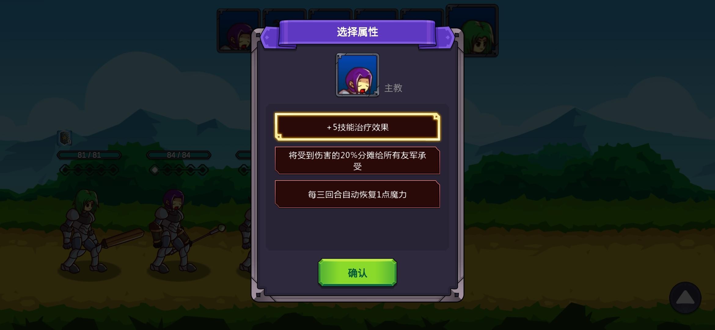 这俩货为啥要放一起说呢?因为这俩货就是一对的,看升级天赋就能看出来。你说他们这天赋有用吗,确实还是有点用的,不会让单一队员承受过高的伤害。但会让敌方的每一次攻击都变为aoe伤害。所以他们的升级天赋可以说并没有什么加成,只是把单体队员受伤的比例更多的分摊在所有队员身上。或者替队友承担更多的伤害,仅此而已。再加上这俩的技能都是需要两点魔力才能用的,比较鸡肋。主教还好一点,有了专武就只需要一点魔力了。