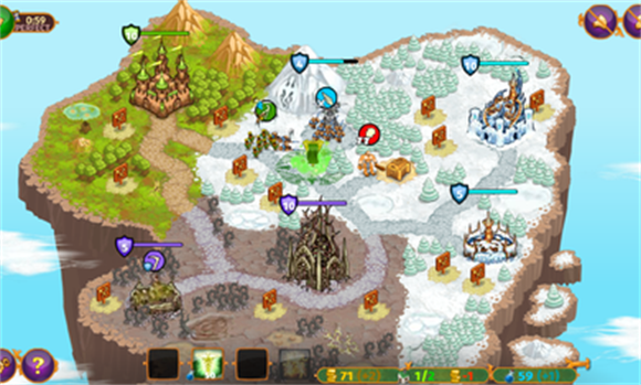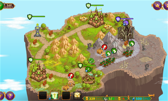 3、五中类型的小队、三种类型的据点,玩家需要通过建造金矿等等来提高自己的实力,玩法多多。