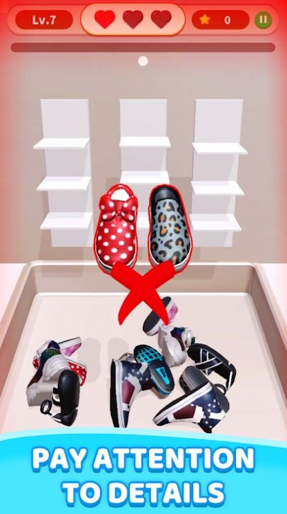 2、享受欢乐的闯关过程,各种类型的鞋子混在一起,一定不要看错了。
