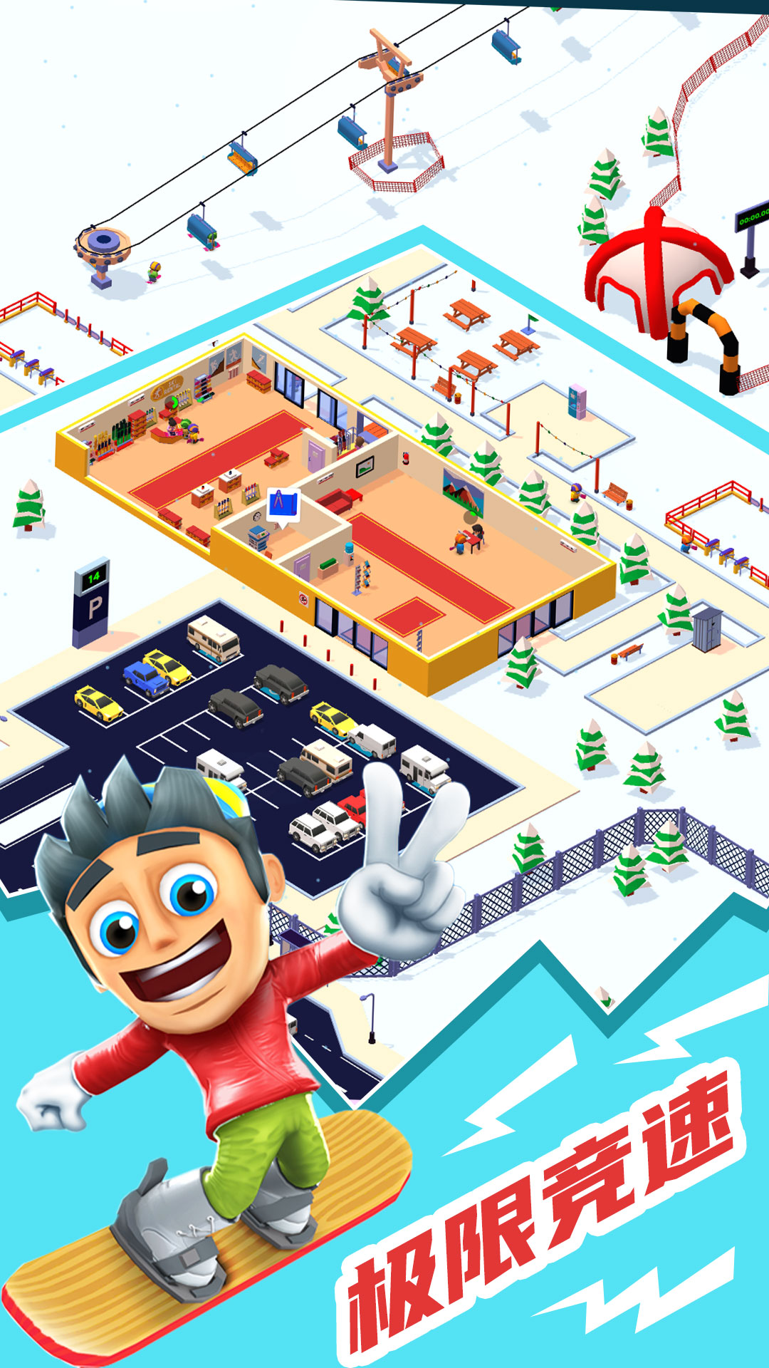 1、这里有很多不同的模式玩法,你可以经营你自己的滑雪帝国来扩大经营。
