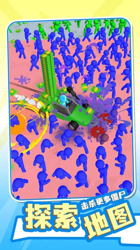 1、玩家将驾驶一辆压路机疯狂的击杀僵尸,只需要驾驶压路机把僵尸压扁就行。