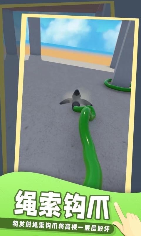 1、玩法简单易懂,只需要手指点击屏幕发射钩爪,然后触碰到想要的建筑就能直接破坏掉。