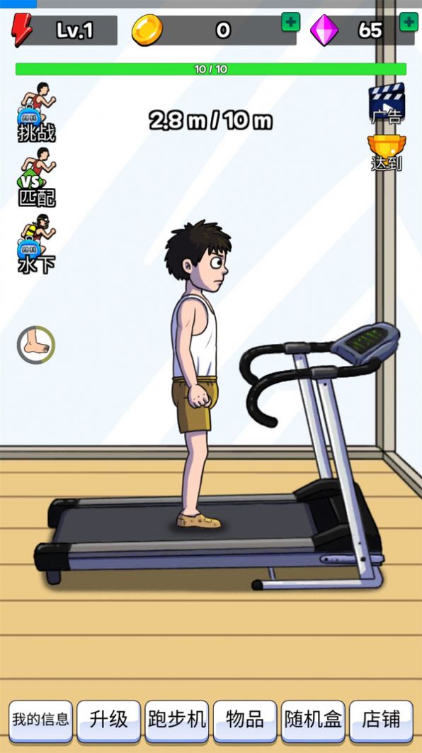 冲冲冲快冲游戏是一款玩法非常特别的模拟类型的游戏,在这个游戏中玩家将会成为一名跑步爱好者, 我们需要通过自己的操作让自己的角色能够拥有更快的速度,游戏中有很多的锻炼方式,跑步机、负重跑等等方式,都是可以提供给我们帮助角色锻炼的呢。