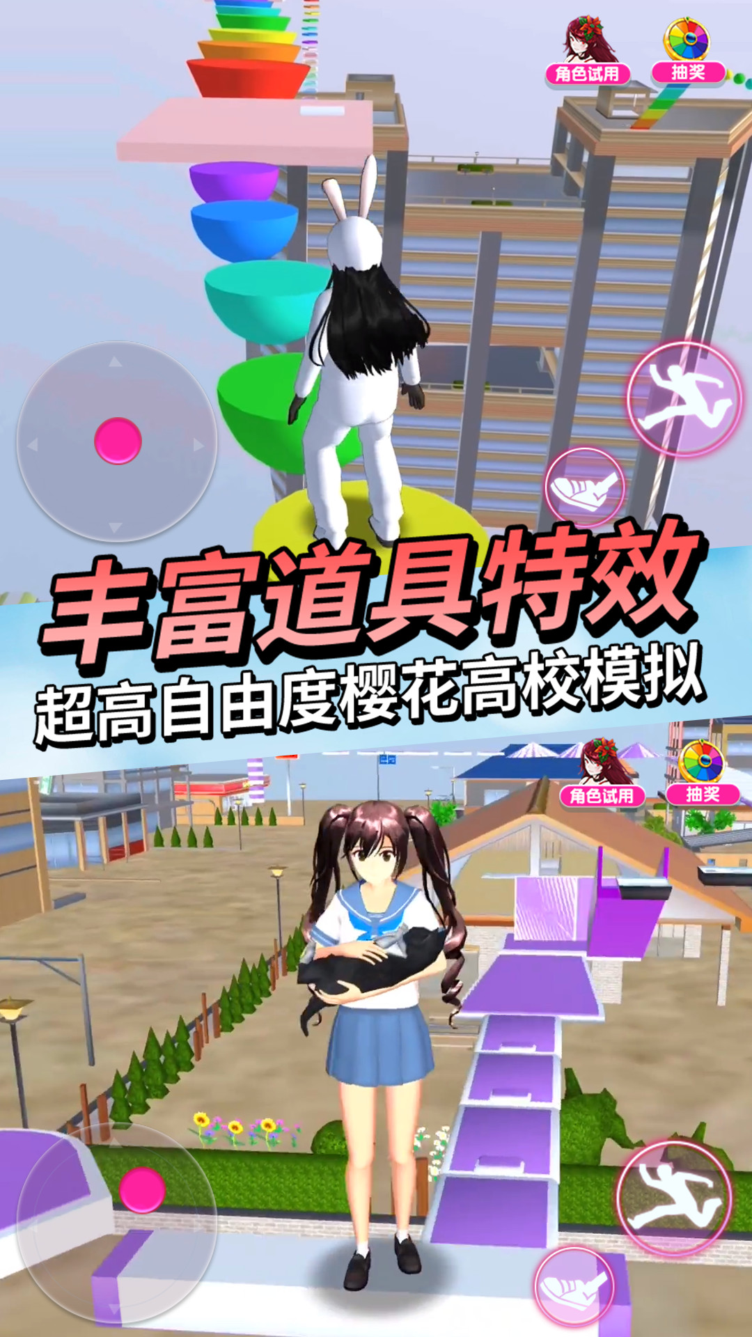 1、模拟校园内容体验类游戏,超多校园场景。