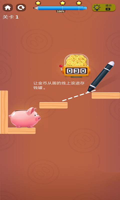 3、这是通过简单的操作,让金币从画的线上滚进存钱罐。