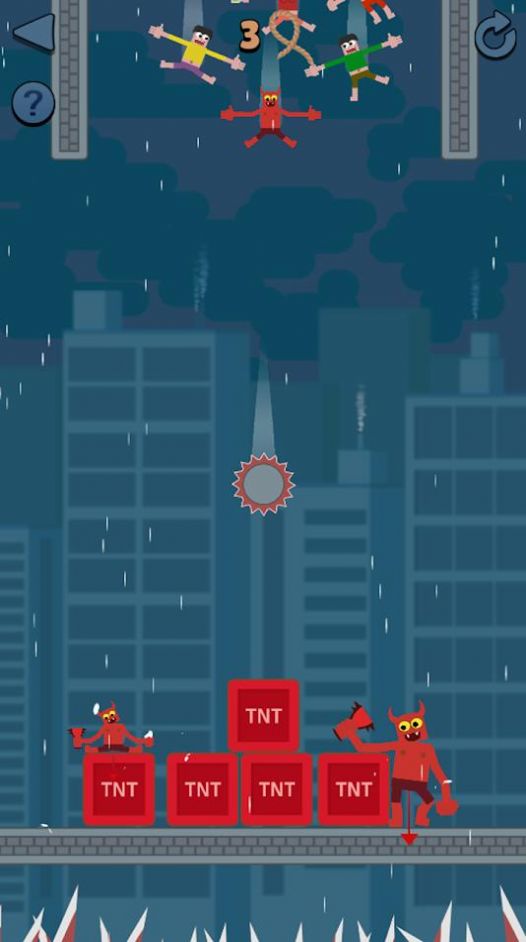 2、利用绳索来拯救所有的人,我们必须成功救援所有人群才算成功闯关;