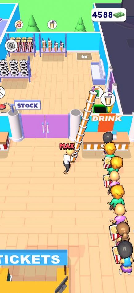 3、不断维护和升级电影院,还能解锁更多的区域,让你能赚到更多金钱。